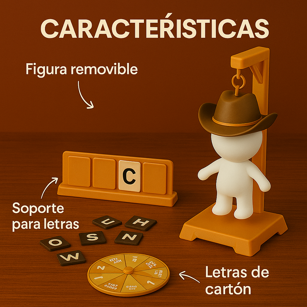 La base y la figura son de plástico ABS resistente, mientras que las letras son de cartón grueso, diseñadas para durar y resistir varias partidas.