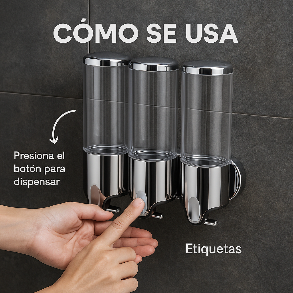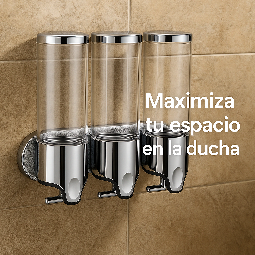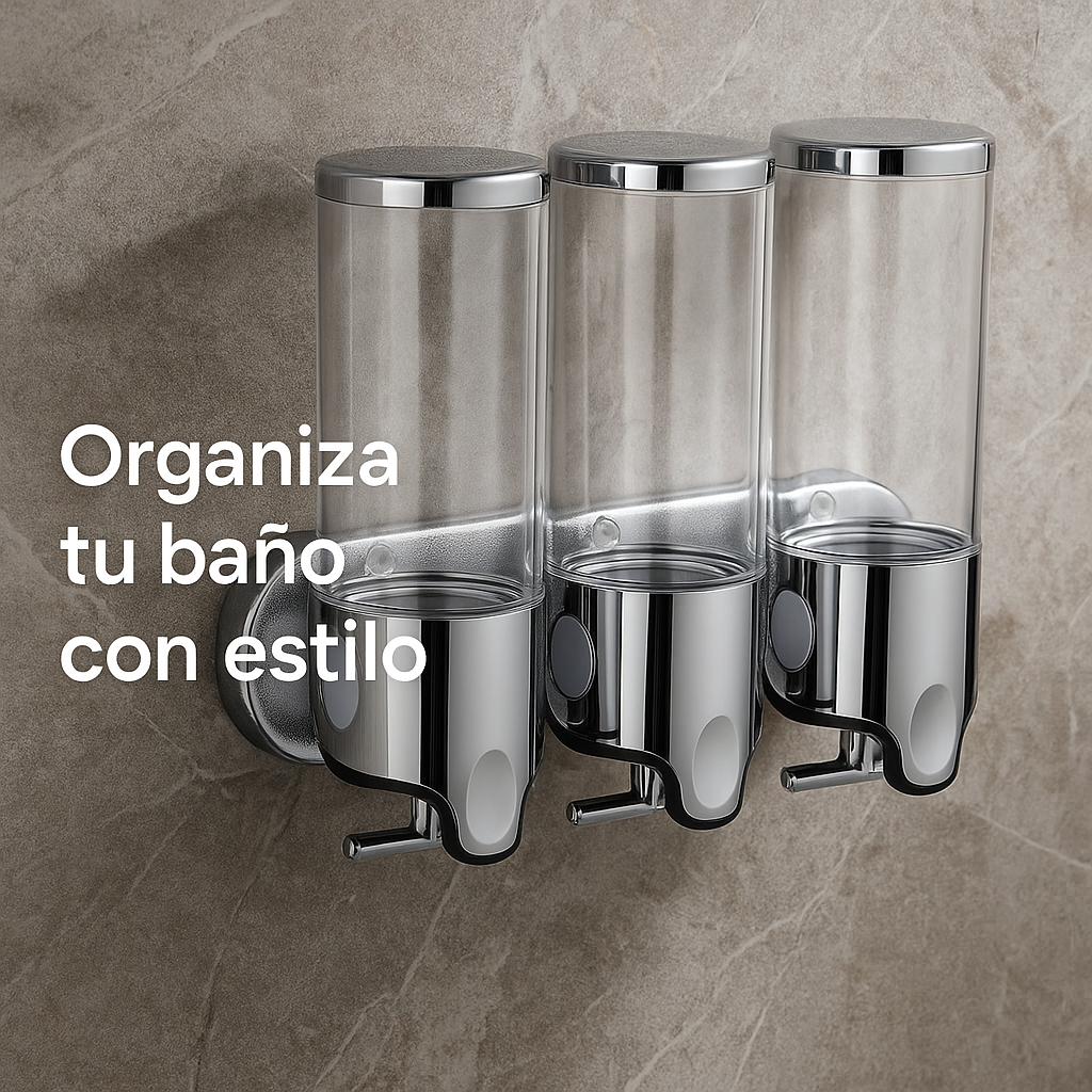 Nuestro dispensador triple 3 en 1 te ayuda a mantener todo organizado, sin taladros ni complicaciones — solo funcionalidad, estilo y comodidad cada día.