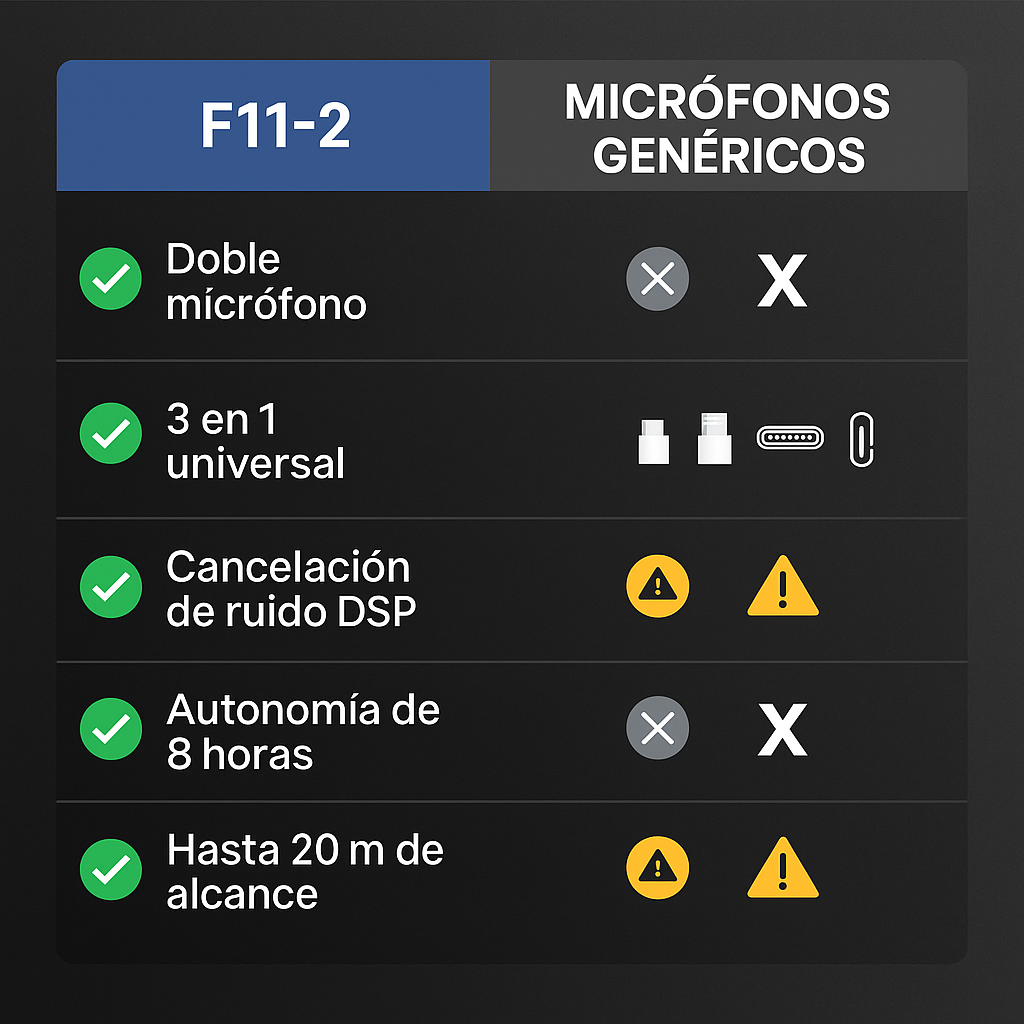 Sí. El F11-2 utiliza tecnología de reducción de ruido DSP y una frecuencia de transmisión estable de 2.4 GHz, lo que garantiza un audio limpio, sin interferencias ni distorsiones, incluso si estás lejos del receptor.