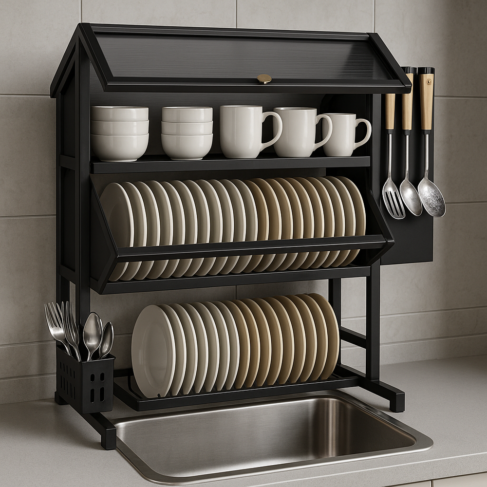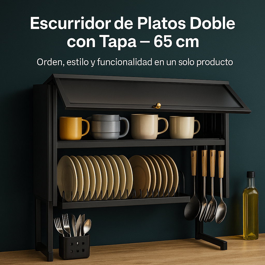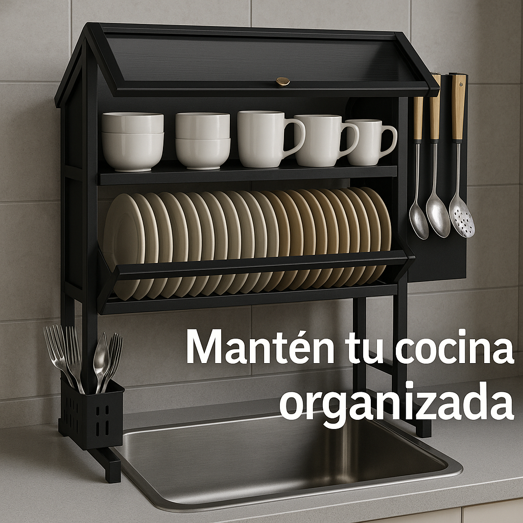 Aprovecha cada centímetro de tu cocina con un diseño inteligente de dos niveles que organiza platos, vasos y utensilios mientras los protege del polvo. Ideal para hogares modernos que buscan practicidad, estilo y máxima eficiencia.