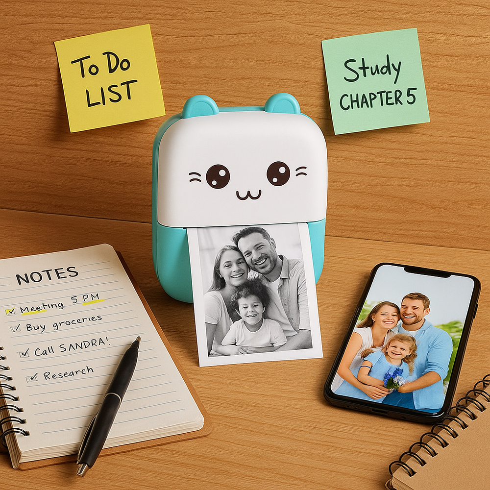 Convierte tu celular en una mini imprenta creativa. Captura momentos, notas o frases inspiradoras y dales vida en segundos sin tinta ni cables. Compacta, portátil y lista para acompañarte a clases, al trabajo o en tus viajes.