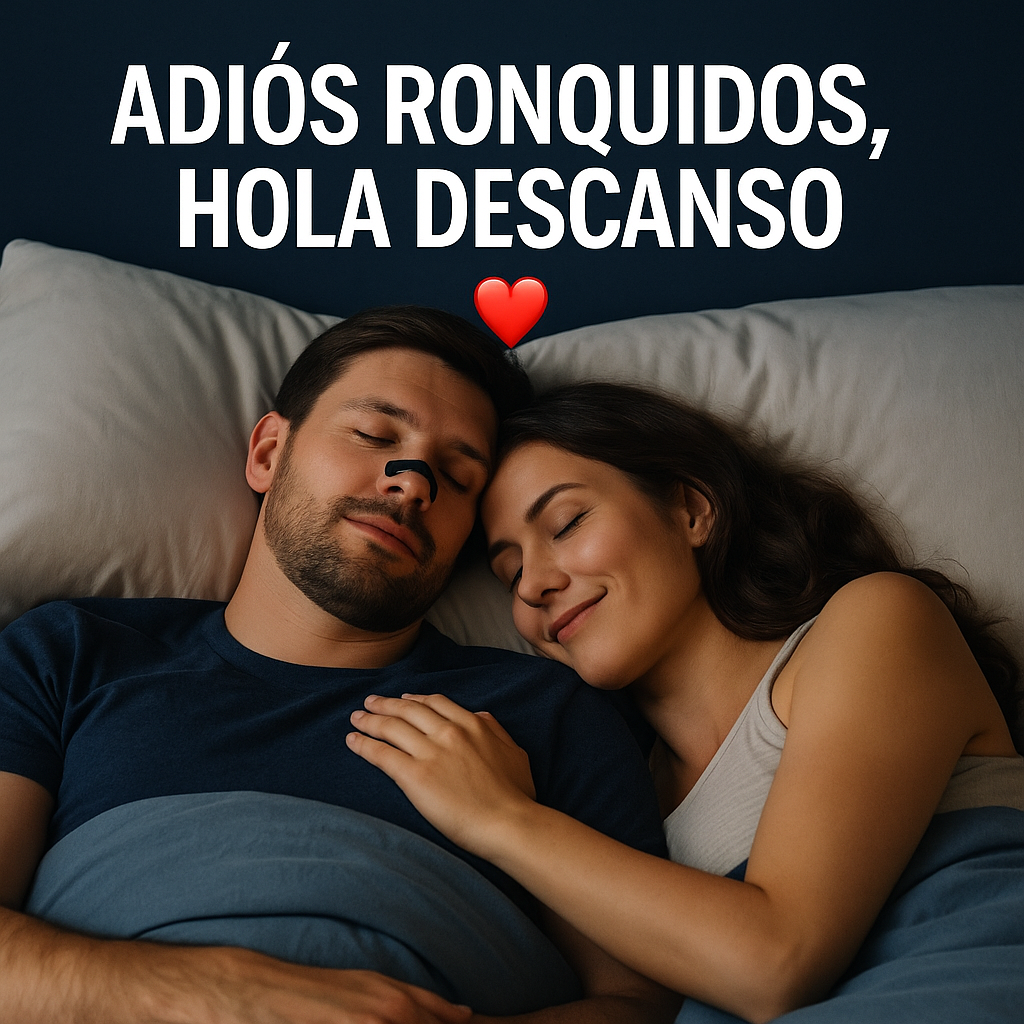 Olvídate de las noches interrumpidas por ronquidos o congestión. Nuestras tiras nasales abren suavemente tus vías respiratorias para que descanses como nunca, sin aparatos incómodos, sin ruidos y sin gastar una fortuna en tratamientos.