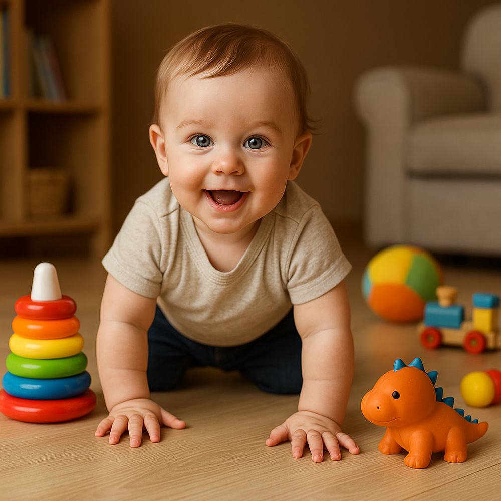 A esta edad comienzan a explorar, gatear y reaccionar a estímulos, y el Pato ayuda a motivarlos de forma segura.